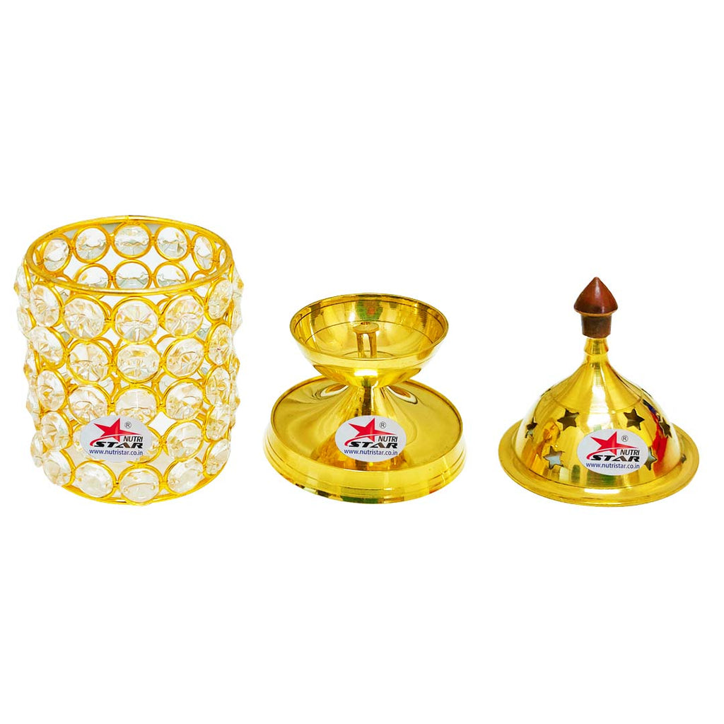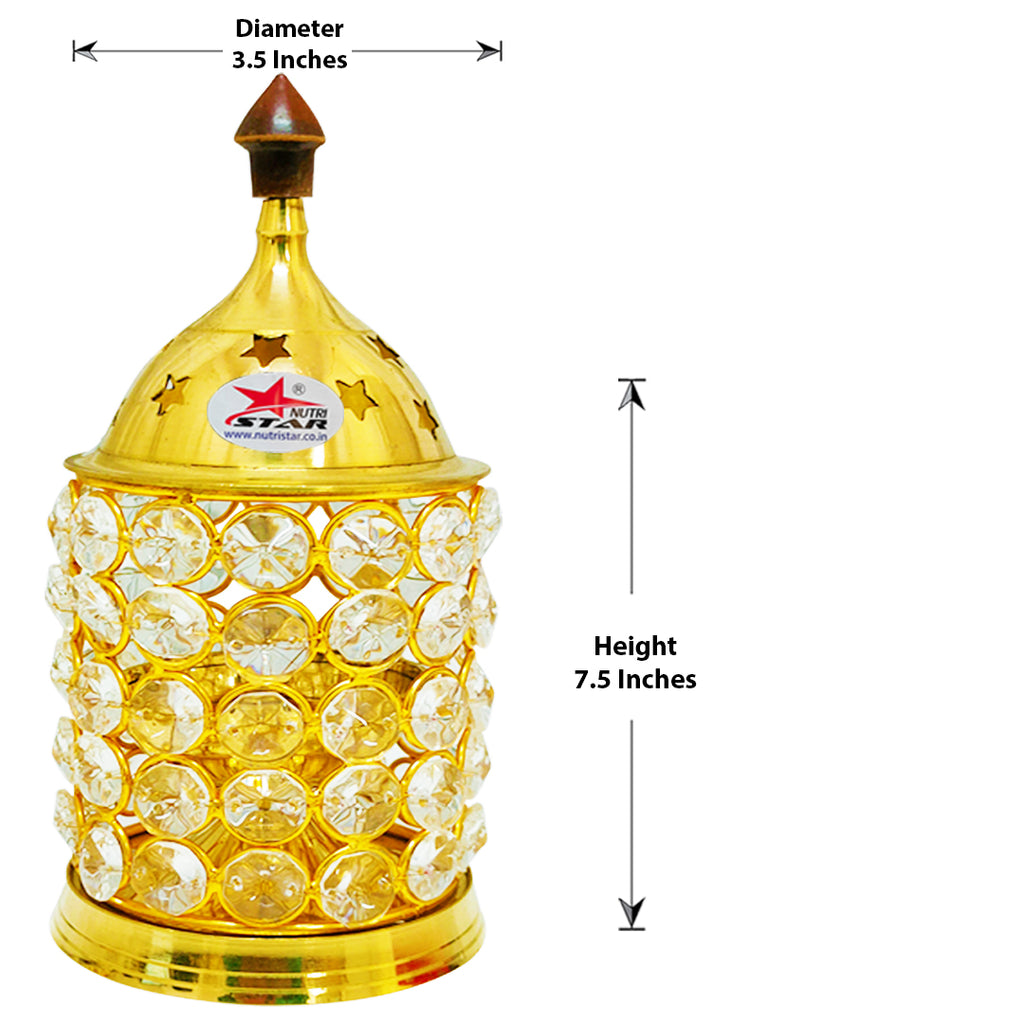 Product Details: Crystal Diya is made of brass, which makes them sturdy and long-lasting. It is strong, with a sturdy brass Diya cup and bottom, heat resistant, and shock resistant for continuous devotion. This Crystal Akhand Diya is ideal for festivals and increasing the divinity of your home. Our product is suitable for festive Pooja rituals such as Diwali, Holi, Ganesh Chaturthi, and others. With our Crystal Akhand Diya, made with purity, create a calm, meditative, harmonious, and thoughtful mood in your Pooja and add more charm to your Poojas and Aartis.